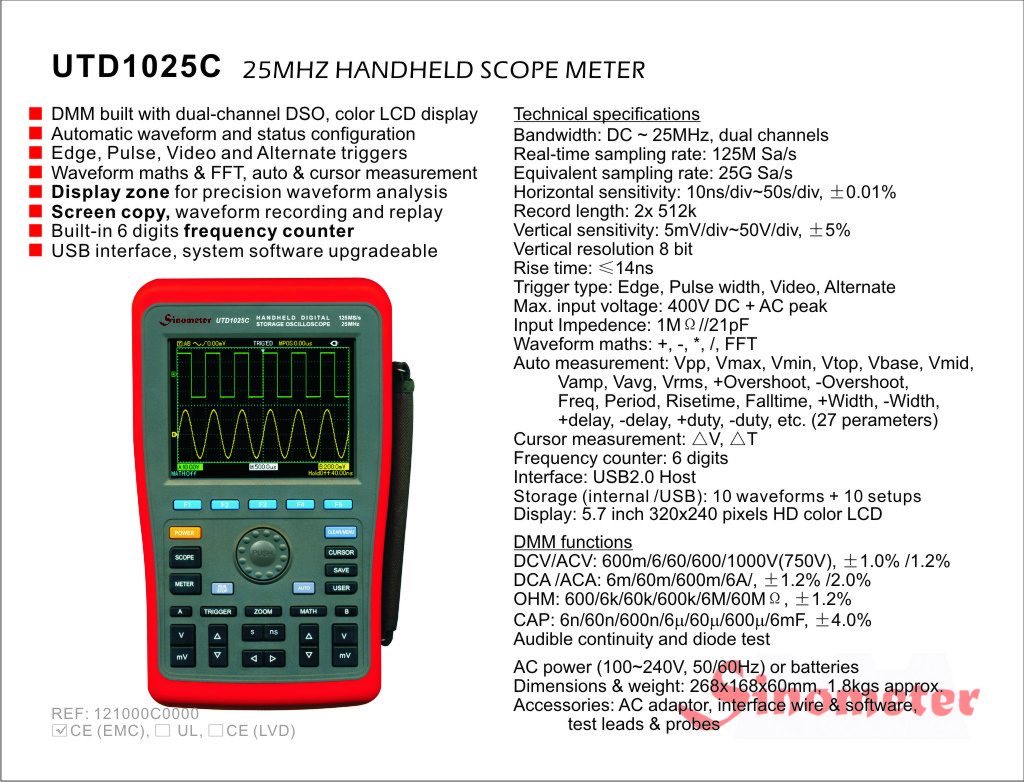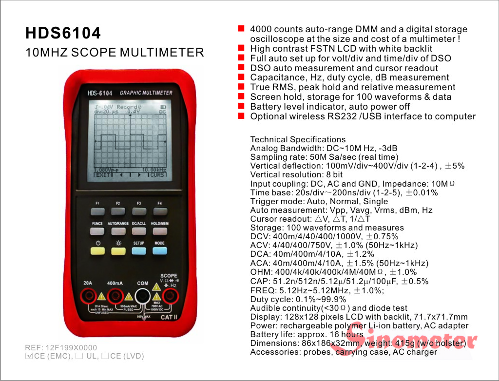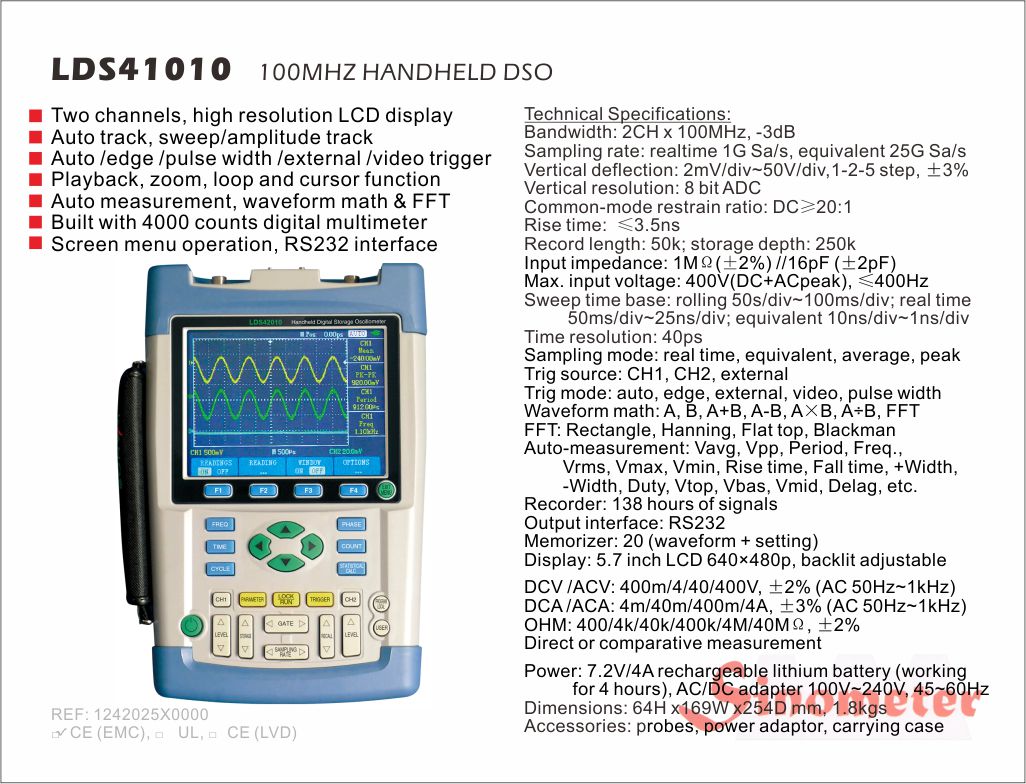 Handheld 100MHz digital storage Osc., color LCD, 1G Sa/s