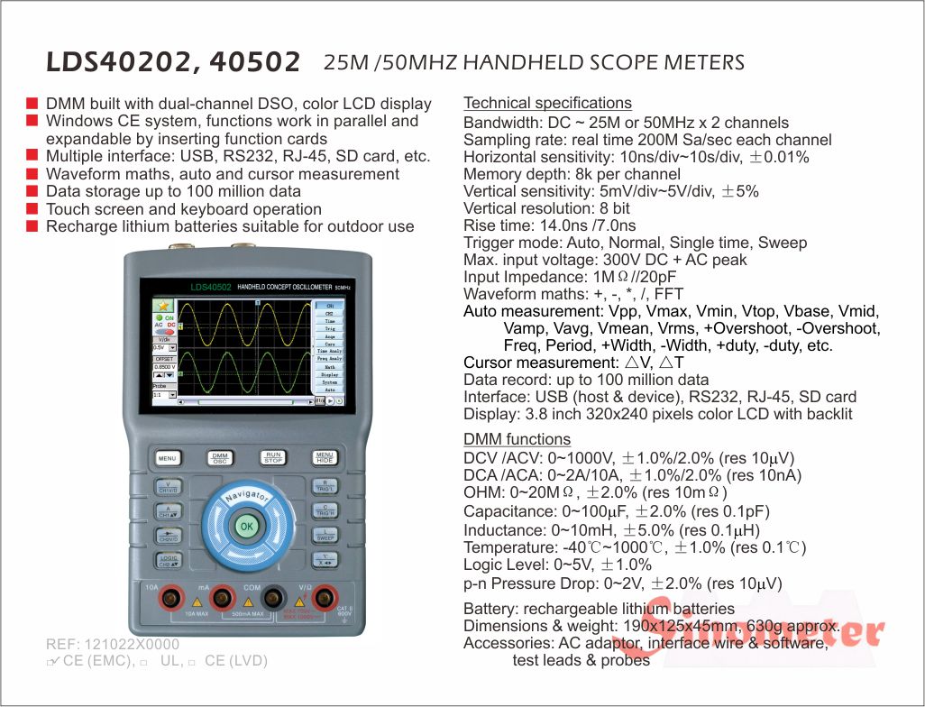 Handheld 200MHz digital storage Osc., color LCD, 1G Sa/s