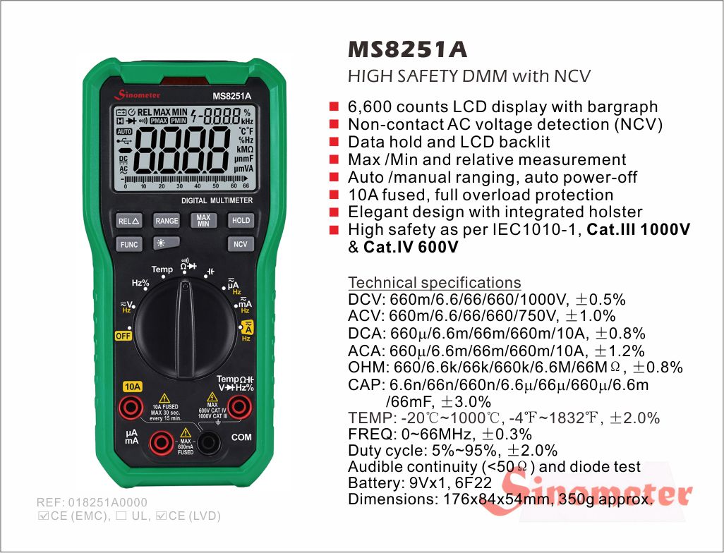 High safety DMM with NCV, Cat.III 1000V, USB True RMS